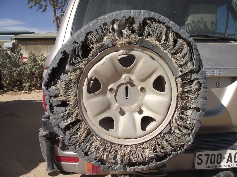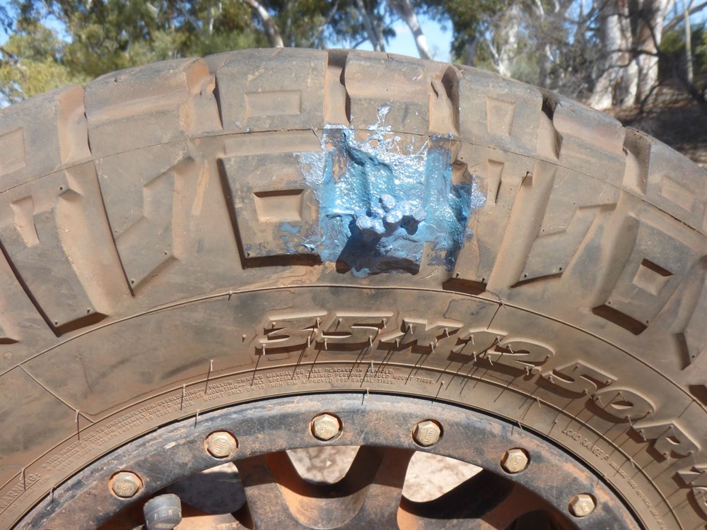 I did carry tyre plugs and also a comprehensive Rema Tip Top repair kit capable of repairing even staked tyres internally but never had reason to use either. I attended a tyre repair class conducted by Mick Hutton of Beadell Tours fame and it gave me confidence to survive. And of course I had a compressor and all the necessary tyre tools.