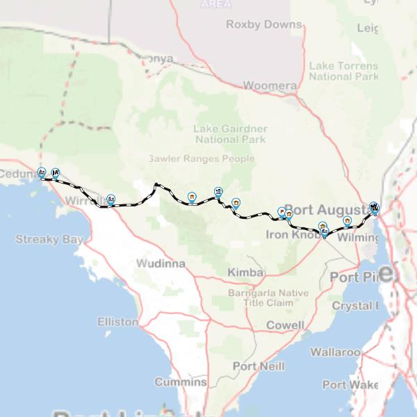 Port Augusta and heads towards the town of