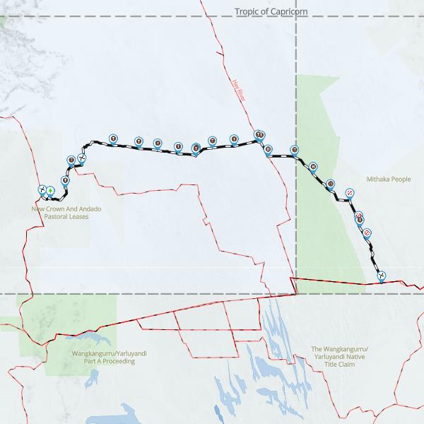 Camp 6 so you'll need to head back to the south and then east, passing through a tiny section of land at the apex of two triangular areas of Native Title. That point gives access to the Colson Track and then it’s cross country to