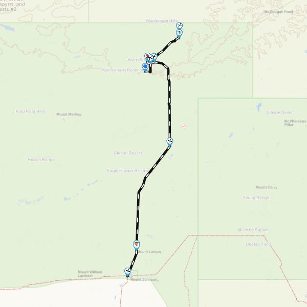 Gibson Desert. At the northern end it can take you to the Gary Highway or the Talawanna Track and the southern end finishes at the Gunbarrel Hwy.