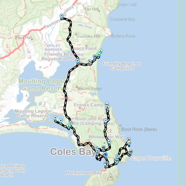 Coles Bay. This spot provides adequate campsites and basic facilities. The beaches are generally more protected from the winds and offer spectacular