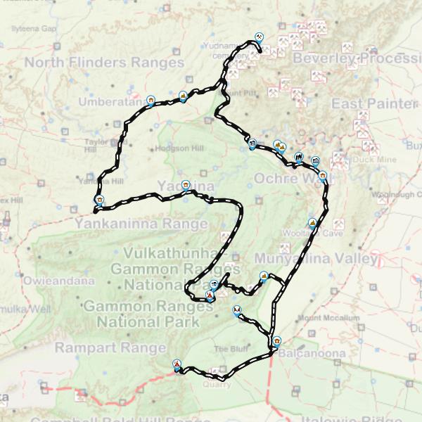 This Trek is an adventurous loop from Arkaroola throughout the Vulkathunha-Gammon Ranges that incorporates access along 4WD trails on the plateau fringe to bush camping and accessible hiking trails. The highlight of the trek is a 5km walk from the campsite at Lochness Well along a creek bed to the spectacular Bunyip Chasm.