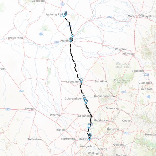 Lithgow in NSW, provides a practical route to north Queensland. It passes through many old colonial towns such as: Gilgandra,