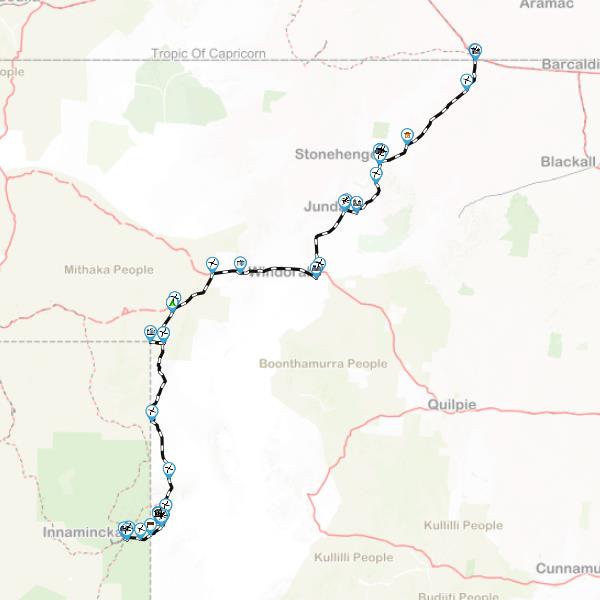 Diamantina Dev Rd & Birdsville Dev Rd to Birdsville Dev Rd & Planet Arrabury Rd