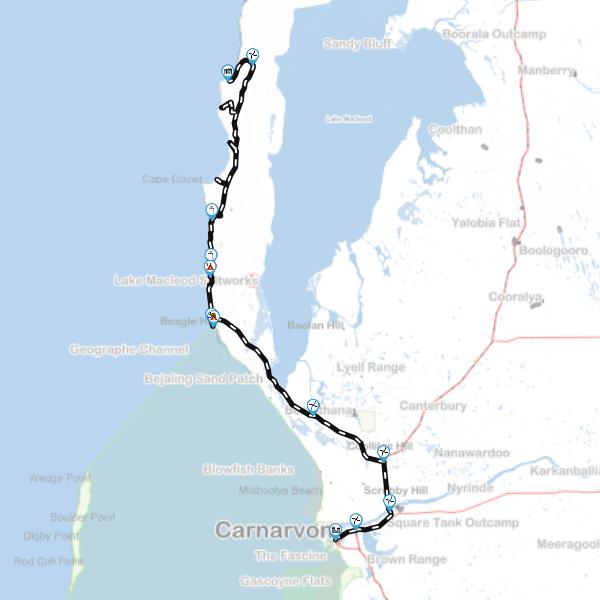 HMAS Sydney Memorial Cairn. Other attractions along the route include the Gascoyne